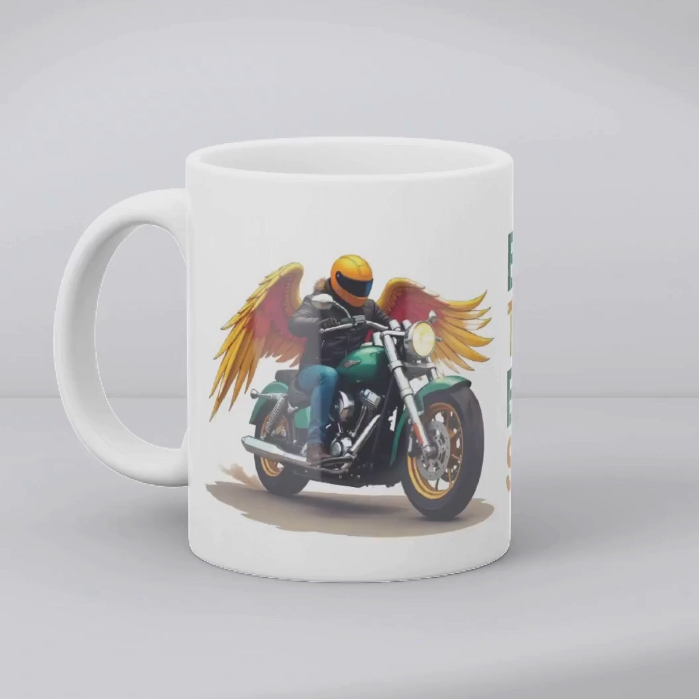 Crafted for motorcycle enthusiasts, this premium ceramic mug features the powerful mantra "Born to ride, built to soar" alongside a striking illustration of a winged motorcyclist. The design symbolizes freedom and adventure, making it an ideal gift for riders who view the open road as their sanctuary.Β