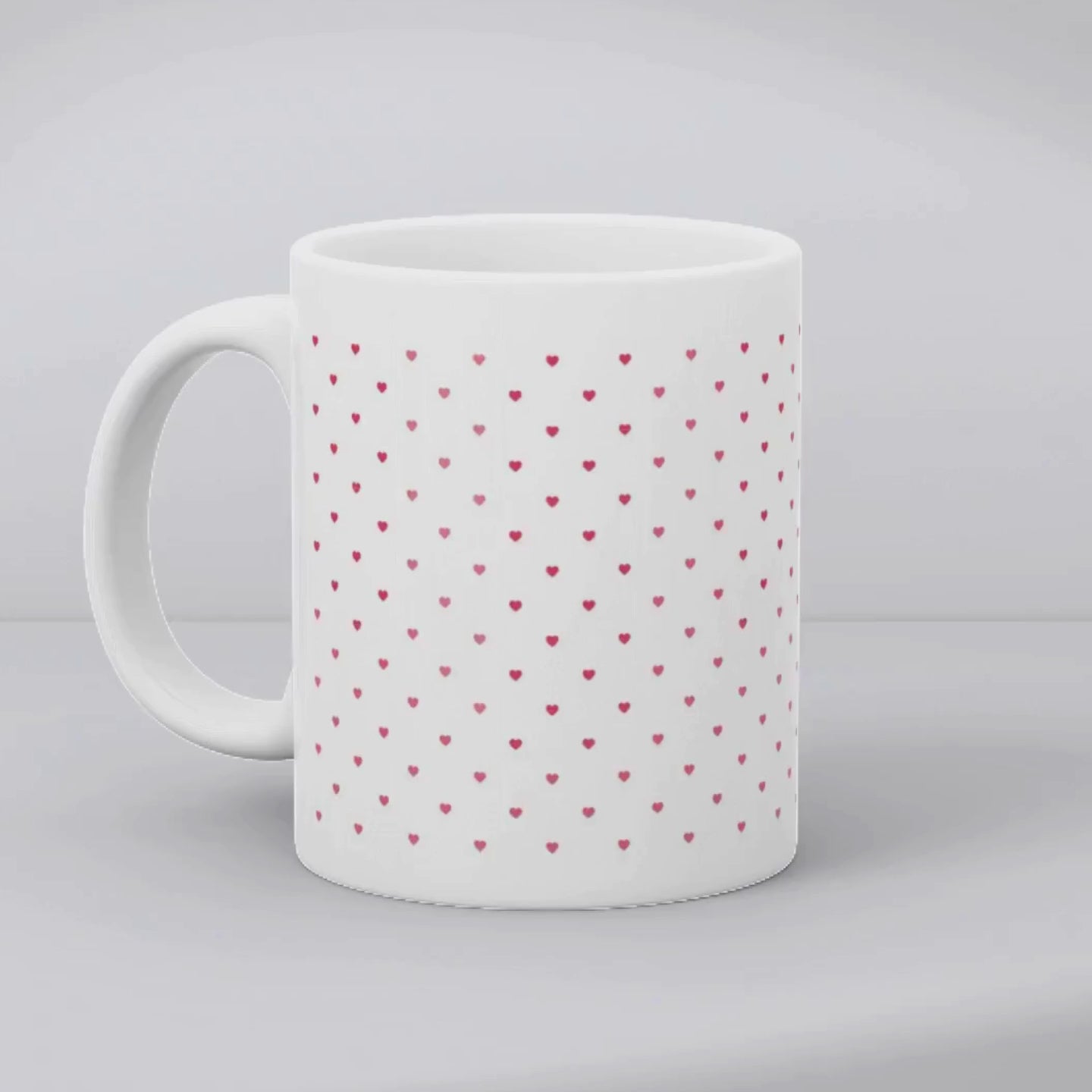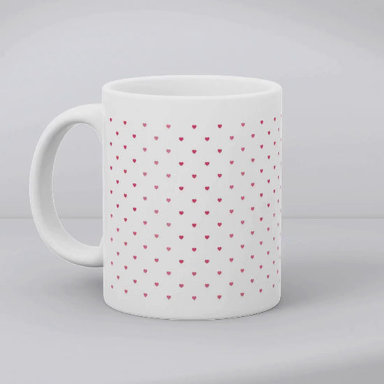 Love is in the details. This minimalist mug features a seamless pattern of tiny hearts and dots—sweet, stylish, and perfect for a cozy drink.
